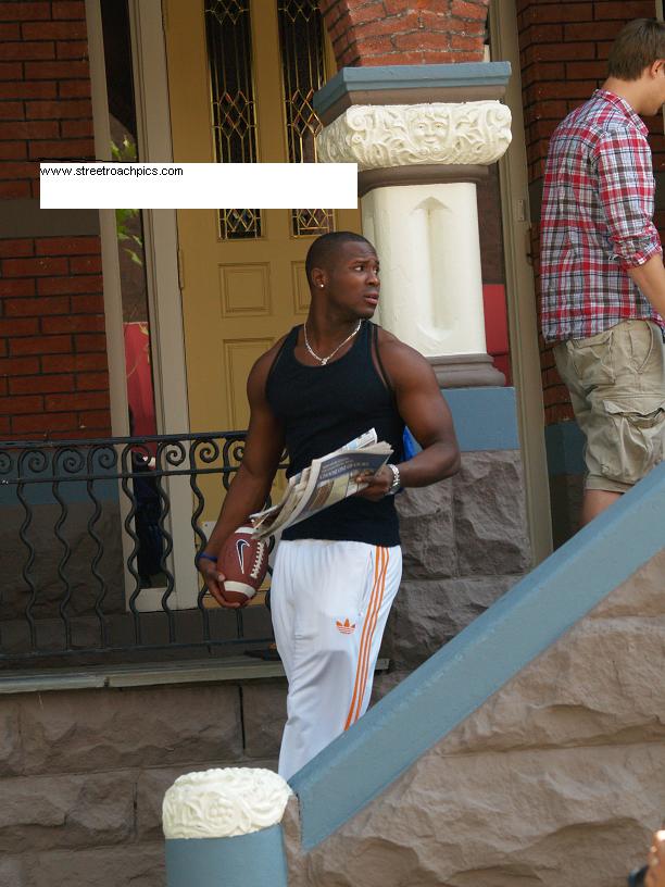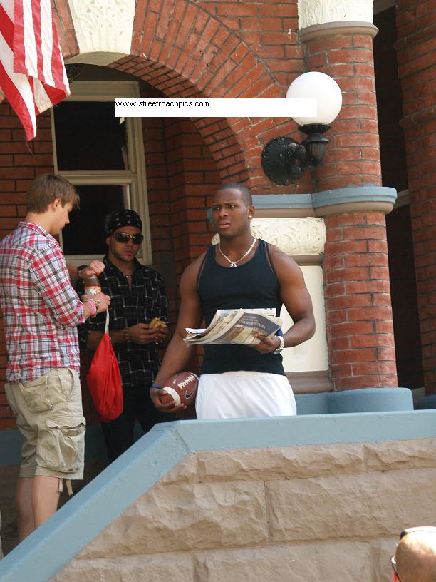 Streetroachpics.com has pictures of the football and Ty caring the football.